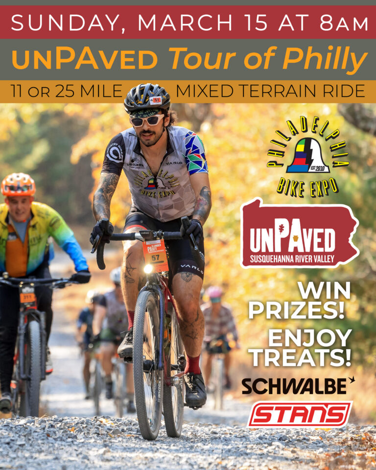 Sunday, March 15th, Meet at the Rocky Steps at 7:50am/Roll at 8:00am Led by unPAved Pennsylvania and PBE Squad – Sponsored by Schwalbe & Stan’s