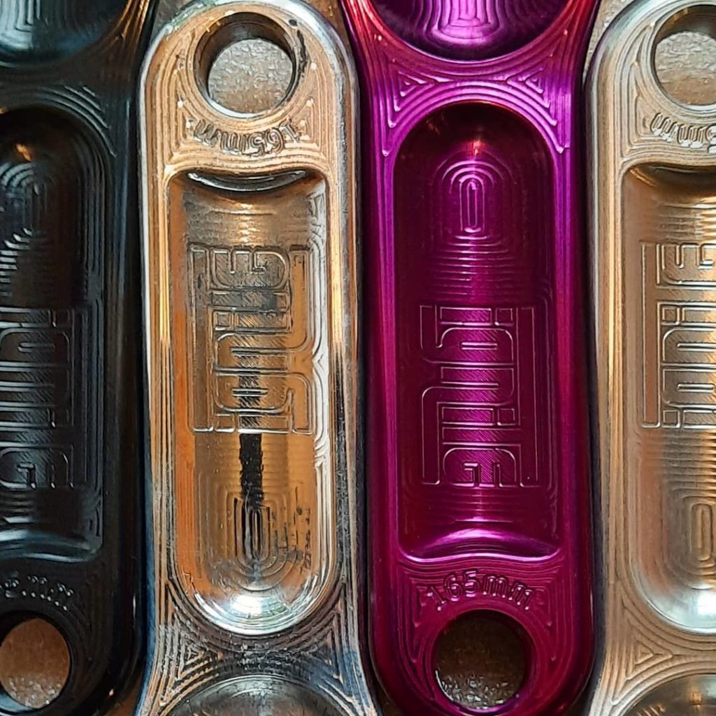 The Inferno cranks also come in a wide variety of anodized finish colors.They are being machined/anodized currently and will ship in time for the 2021 holidays.